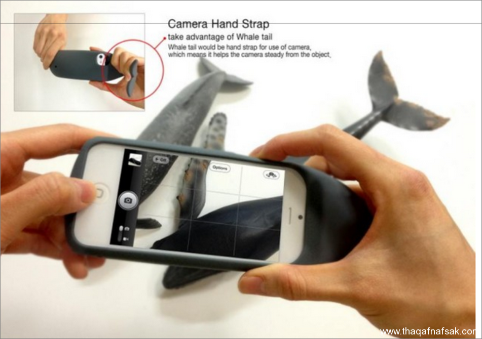 ومن أغرب هذه المحاولات هو غلاف الأيفون الذي يأخذ شكل حوت يسبح في المياه والذي تم تصميمه بواسطة Seyook Lee، حيث أن هذا الغلاف يوفر لك العديد من الميزات والخصائص الهامة